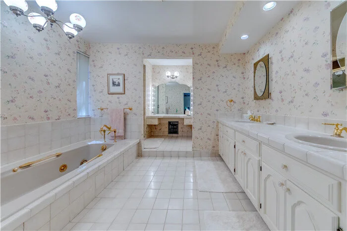 同样的玫瑰色与鹅黄色碰撞,屋主延续到了二楼的侧卧空间,与墙上的人物油画像及暗棕色的木柜烘托出了侧卧清新活泼的氛围。主卫明亮整洁,象牙白的浴缸及盥洗池,大气简约,便于打扫。